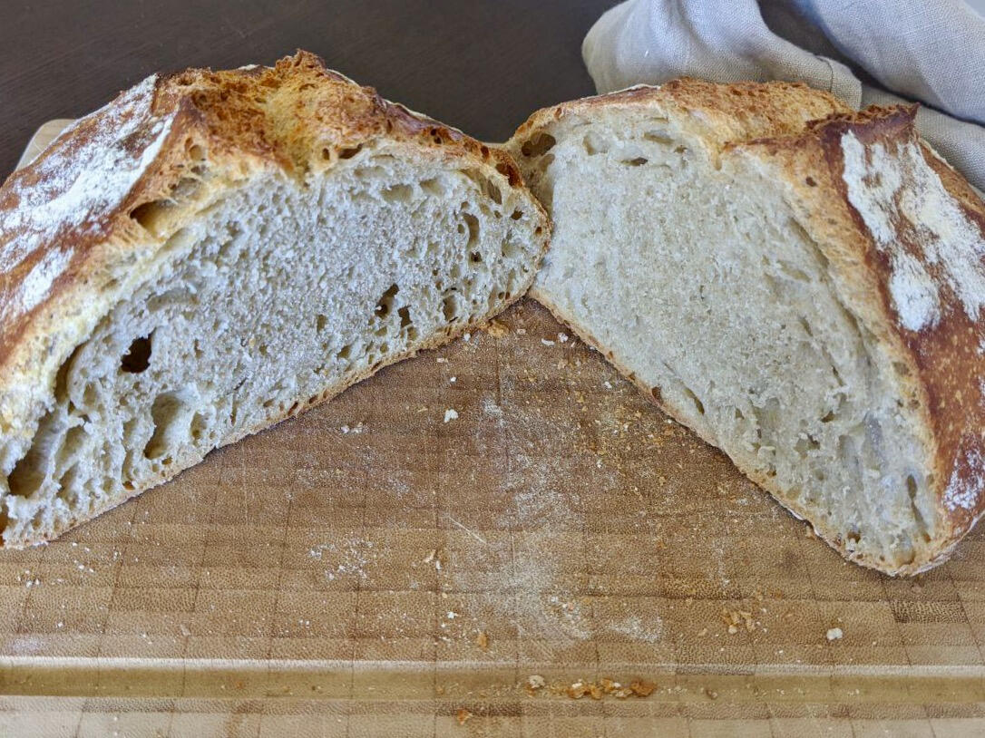And here's what it looks like on the inside (it may have fewer or more holes, depending on the flour you use). Make sure to let it cool down completely before you slice it. Enjoy!